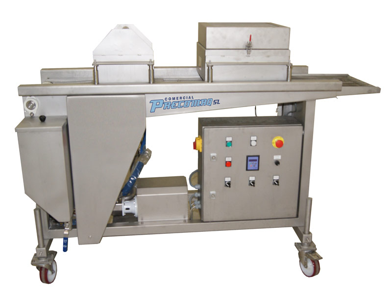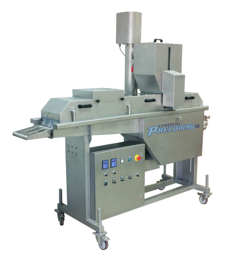 Enharinadora individual combinable con dosificadora-formadora para una completa automatización del proceso.